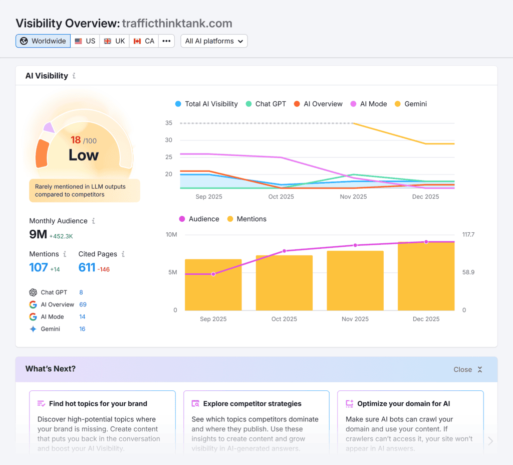 Once you’re done with the audit, you’ll know exactly which areas to focus on to improve your visibility in AI platforms.