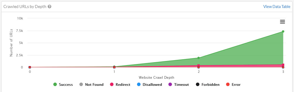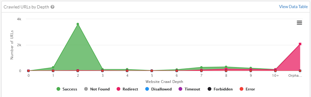 It is also helpful to explore and compare the various graphs and charts which crawlers produce, as they can very quickly show stark differences if they are present. For example, a page depth chart, which indicates the site structure: