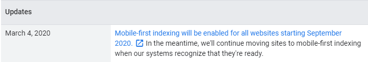 After experimenting with mobile-first indexing over the last few years, Google have settled on March 2021 as the time when they will use mobile-first indexing for ALL sites (this was originally September 2020, but they pushed it back in July).