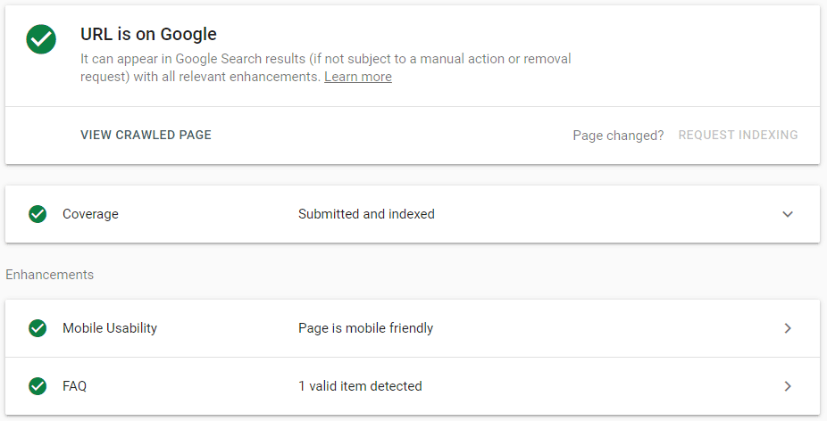 If you have concerns about particular URLs, make use of the ‘URL Inspection’ tool, which includes details on indexing and mobile usability.
